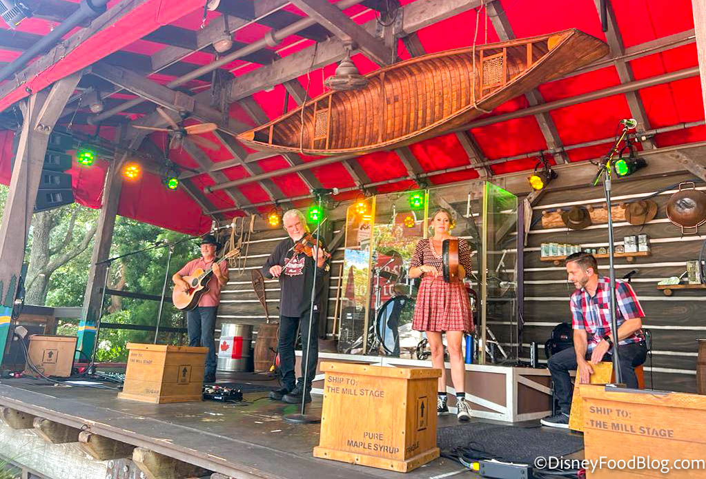 Over on the Canada Mill Stage, you can catch Alberta Bound, a Canadian band! They perform regularly in the Canada pavilion and during their performance, you can see traditional fiddling and songs written by Canadian songwriters.