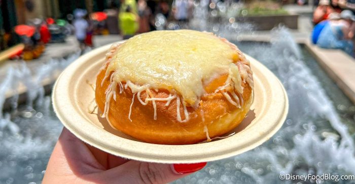 The Mini Pina Colada Funnel Cake is all that and more. Served with piña colada ice cream, whipped cream, toasted coconut, and maraschino cherry, and is drizzled with coconut-rum sauce. It is an item we wish Disney would keep around all year long. Please?! 🙏 Believe us when we say this is one you don’t want to miss! Get it for $9.50.
