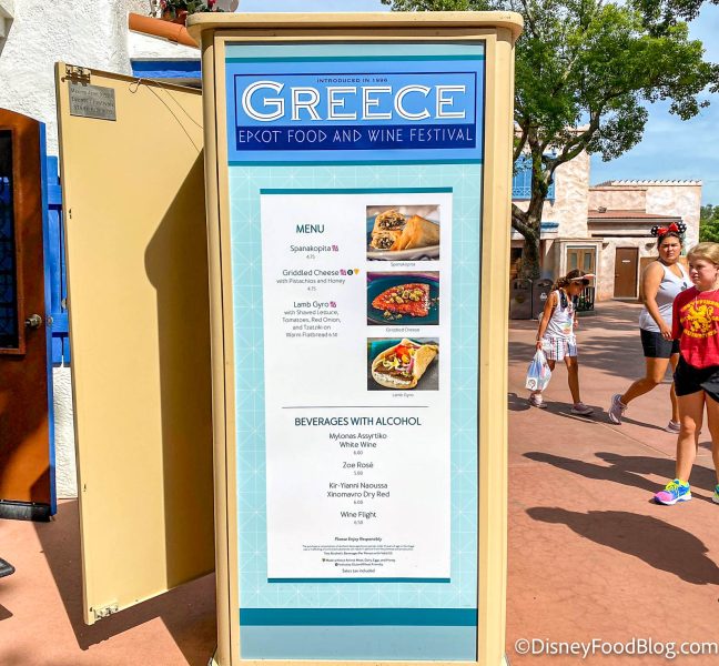 The Cast Members did not share when the booth would be open. But they did say that they hoped the situation would be resolved and that they’d be able to open today. This year, the booth is serving up a new item, a lamb gyro, and some old favorites like the spanakopita and griddled cheese.