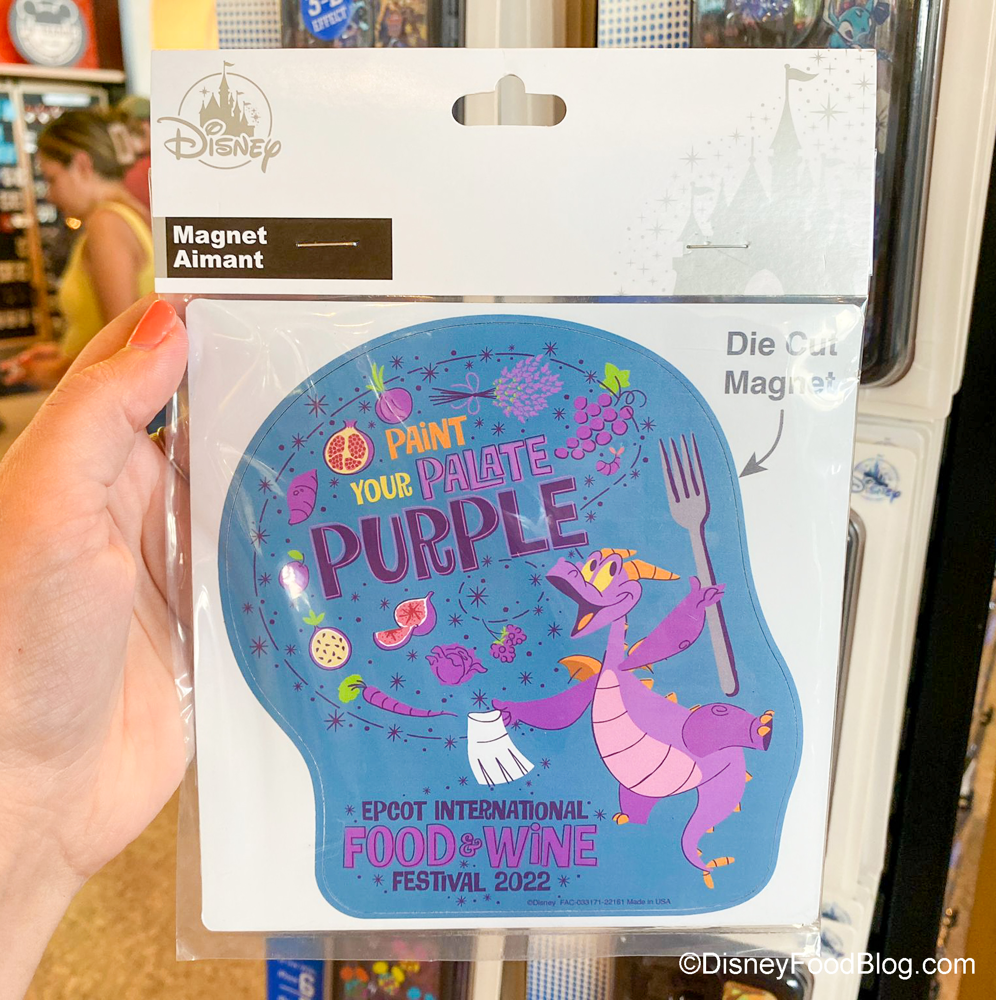 You can’t have a festival without a MagicBand, so meet the 2022 EPCOT Food & Wine Festival MagicBand. It’s purple with little icons of food on it…