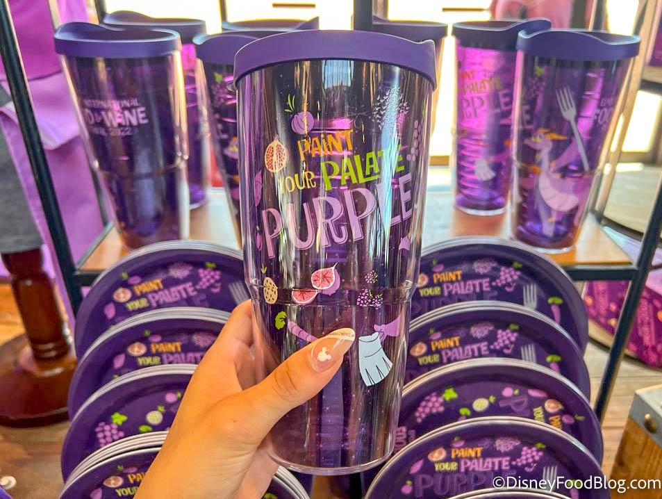 …and “Paint Your Palate Purple” on the other. The tumbler is $29.99.