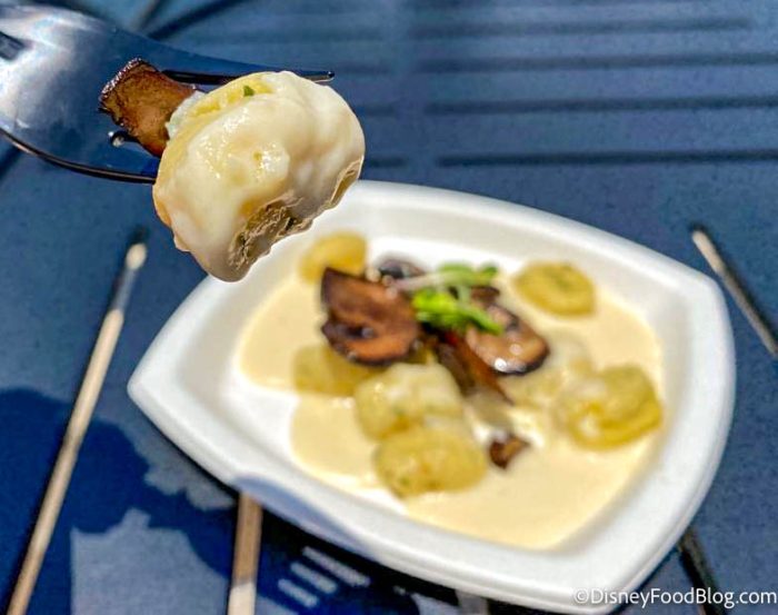 ALL of the food items are new at the Italy booth this year! We started with the new Gnocchi di Patate, which is Potato dumplings with four-cheese sauce and roasted cremini mushrooms for $9.