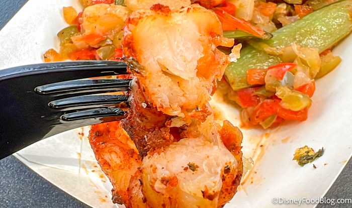 Despite all the problems with the beverages, we thought the food at this booth was top-tier. The lamb was definitely well prepared and didn’t have the game taste that lamb can sometimes get. The shrimp are a great option for those looking to eat something with a little kick, and the cake is perfect as a sweet treat to break up all that savory or end the night at EPCOT.