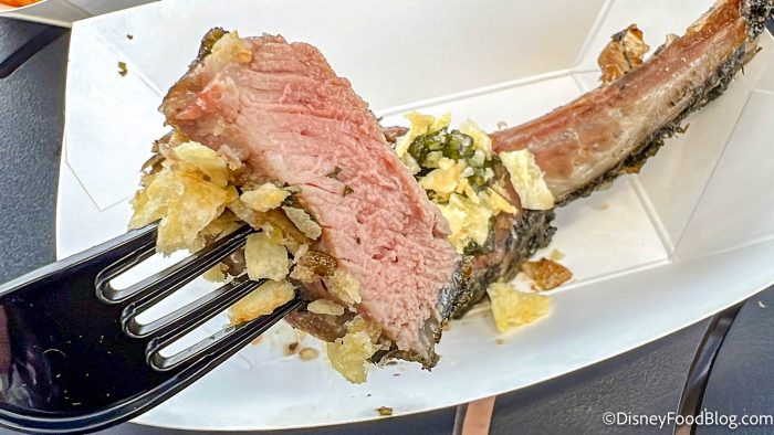The Roasted Lamb Chop with Mint Pesto and Potato Crunchies is also back, and this has been one of our favorites of the festival. It’s juicy and flavorful, and as a bonus — it’s also gluten and wheat friendly. You can get it for $8.25.