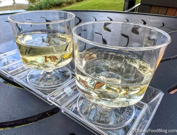 We hope you’re thirsty because there’s a lot to drink! There are two new wines and a new beer, but when we stopped by on opening day, the beer was completely frozen over and undrinkable. (The ONLY thing that’s cold in Florida in July, amirite?!) However, we ordered the Wine Flight for $6.50 to try out one of the new wines!