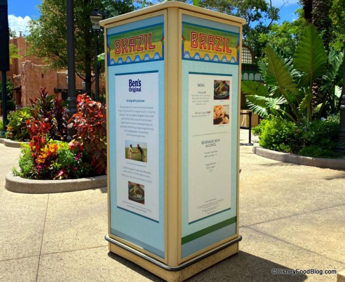The Brazil booth is located between the Morocco and France pavilions in EPCOT’s World Showcase. The menu features a new item along with some returning favorites!