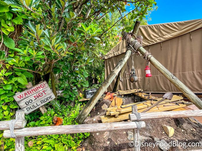 One of the fun hidden details of Hollywood Studios is the “pull the rope” gag next to Indiana Jones Epic Stunt Spectacular. The sign says “Warning! Do NOT Pull Rope” but the “not” is crossed out, so obviously you’ll want to pull it! However, this week, we noticed something peculiar…