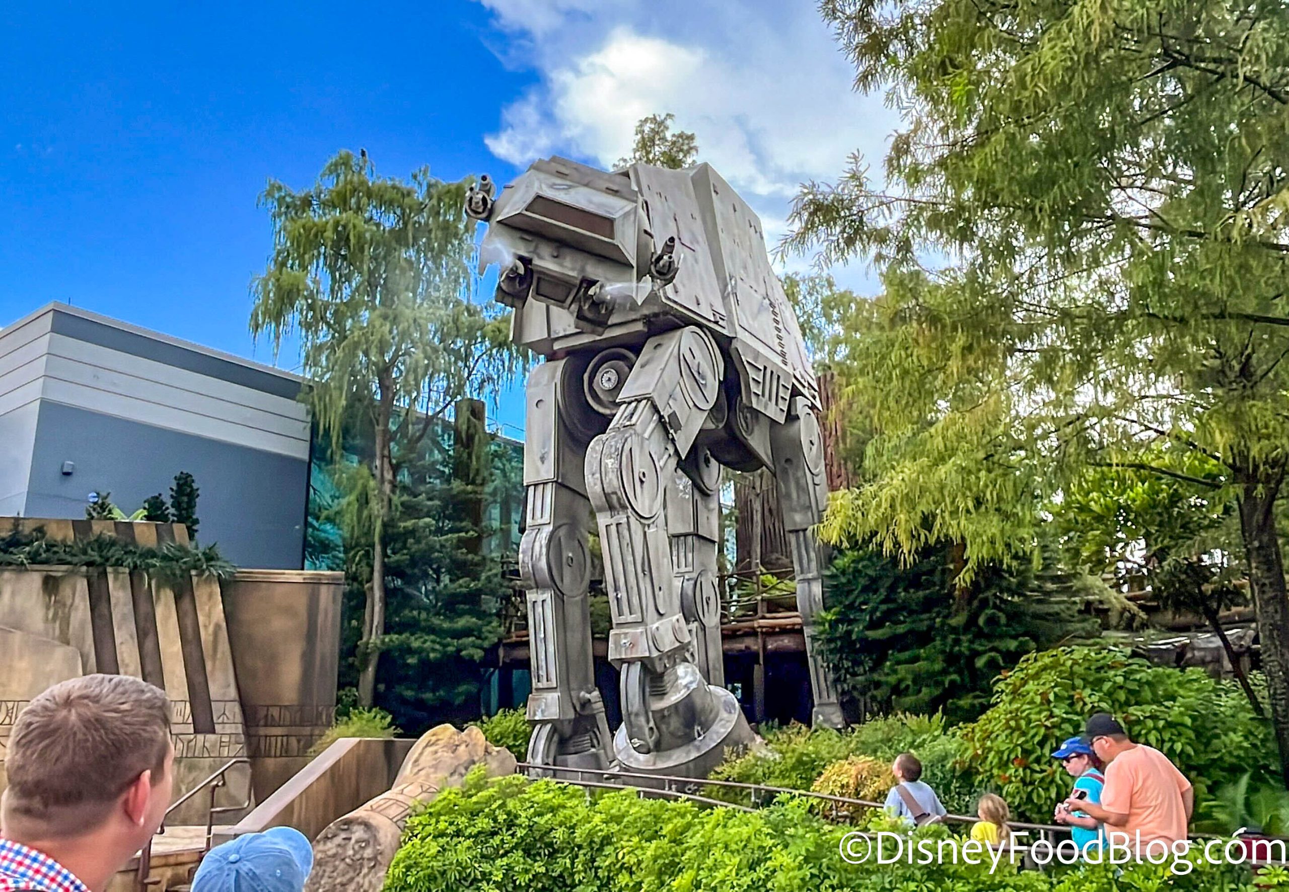 Over by Star Tours, the giant AT-AT was getting in the summertime spirit! How, you might ask? Well, it was misting and spraying water from its head, to help guests cool off down below.