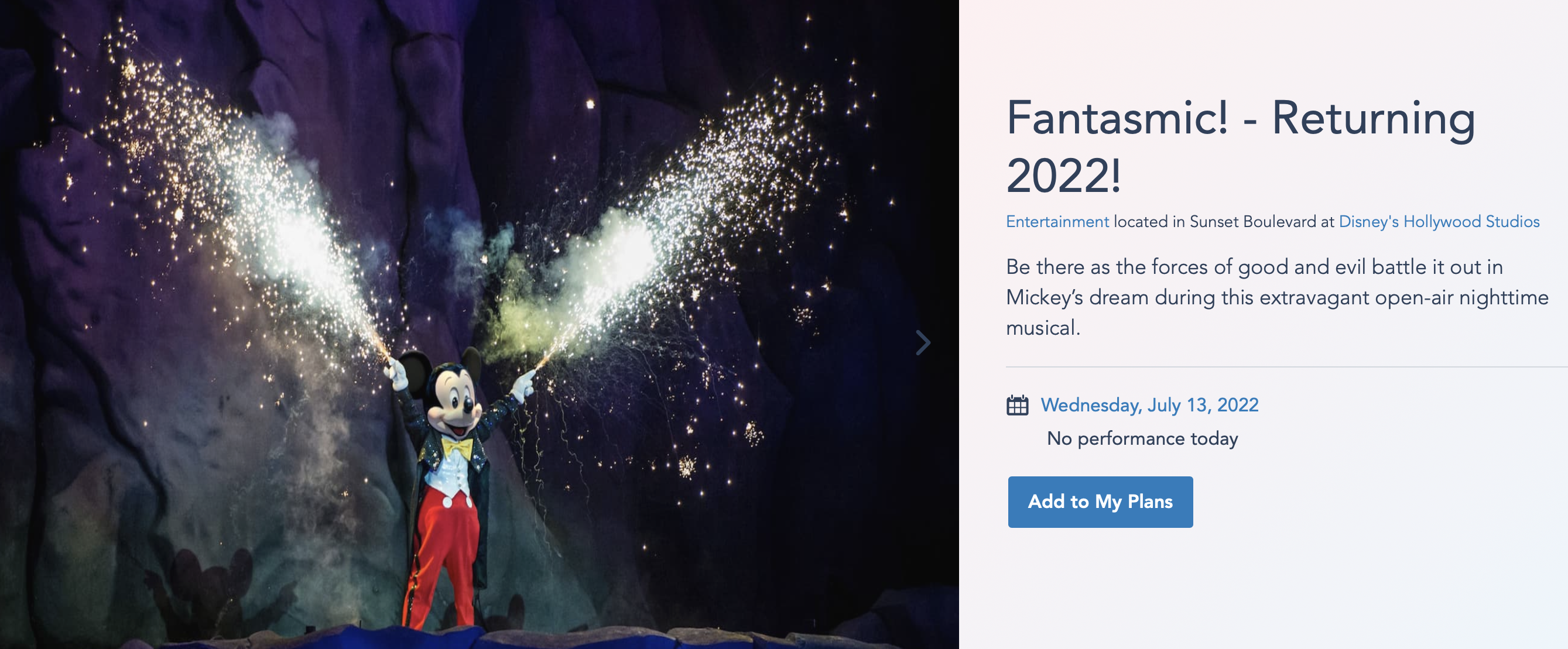 So, we know that Disney said Fantasmic! will open in 2022. And, in case you haven’t noticed, 2022 is over halfway over now, so it HAS to be coming back sometime between now and December, right?! Right.