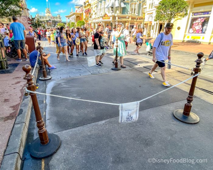 Heads up if you’re visiting Magic Kingdom in the near future — there’s some pavement refurbishment happening on Main Street, U.S.A. A small area has been roped off so you’ll have to walk around for now.