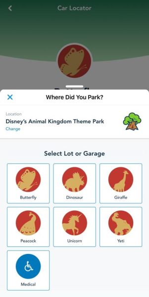 We tried out the new Car Locator feature today at Disney’s Animal Kingdom. When we parked, it allowed us to press the “Save Vehicle Location” button or manually enter the car’s location ourselves. If you use “Save Vehicle Location,” the app will use your current location to get information about your car’s whereabouts.