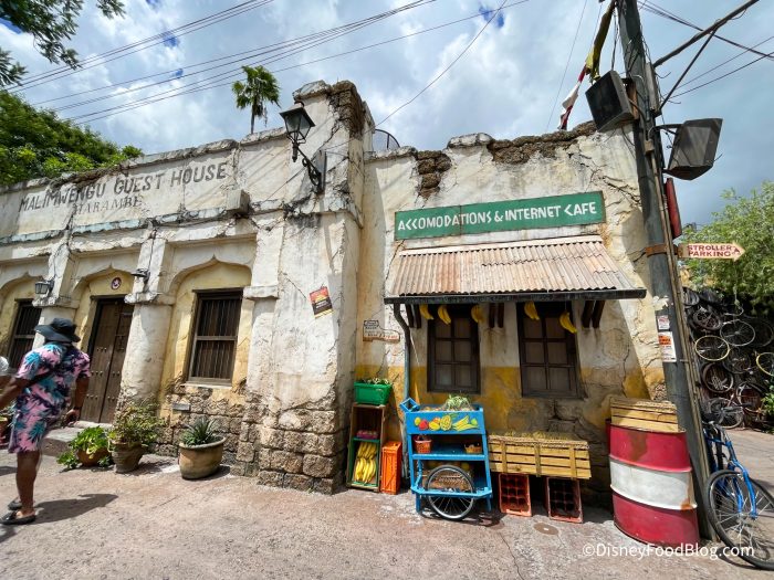 We also noticed that an addition has been made in the Harambe area of Animal Kingdom. There is now a fake fruit cart set up on the side of the building that is made to look like an internet cafe.