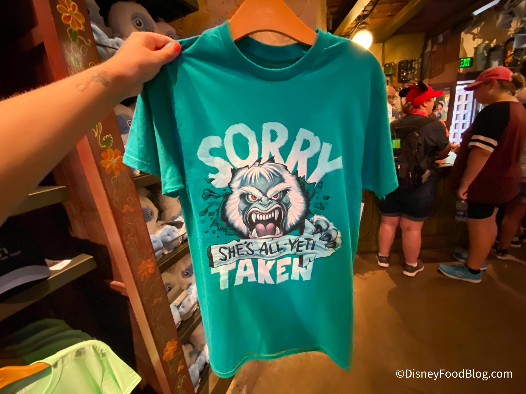 Serka Zong Bazaar is the gift shop you exit into right after riding Expedition Everest, so of course we found tons of yeti-themed items! We saw a bunch of new shirts like this one that says “Yeti or Not Here I Come” for $19.99.