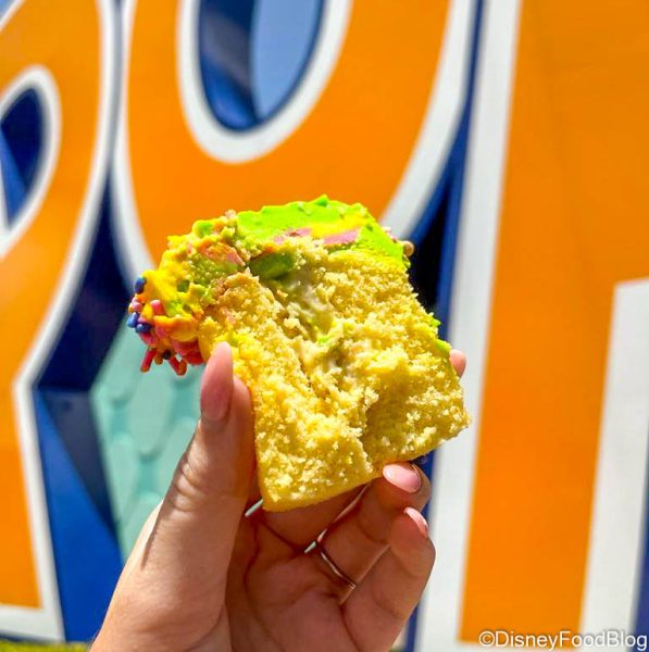 This treat is packed with icing and cream, as the description suggests. That’s pretty on-brand for Disney cupcakes, however, so it shouldn’t surprise your palate. The banana flavoring is also anything but subtle, which we enjoyed.