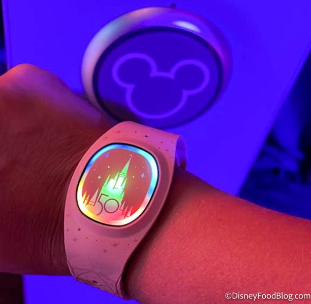 You’ll be able to pair your MagicBand+ to the My Disney Experience app and use it for all the same functions as a regular MagicBand, including opening your hotel room, scanning at the park entrances, and tapping in at Lightning Lanes and virtual queues. On top of that, there will be special ways that MagicBand+ interacts with the parks, including special effects when you’re watching Disney Enchantment or Harmonious, interactive features when checking out the Disney Fab 50 golden character statues, and the new Star Wars: Batuu Bounty Hunters game in Galaxy’s Edge.