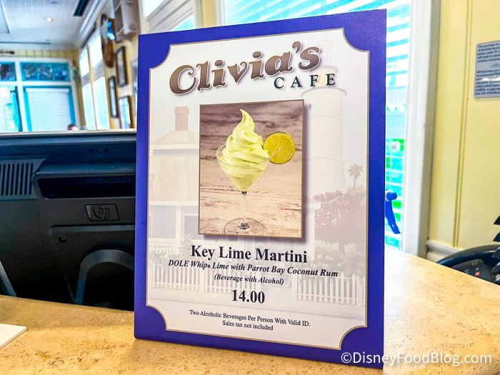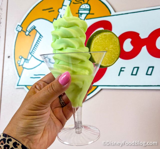 Let’s head over to Disney’s Old Key West Resort to try the new Dole Whip Key Lime Martini at Good’s Foods to Go. This limited-time item has Dole Whip lime served with Parrot Bay Coconut Rum, garnished with a lime for $14.