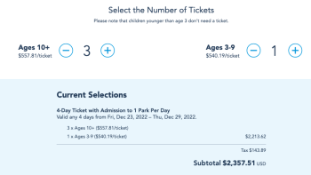 family of 4 at disney world at christmas holiday time 1 park per day ticket price total By Sara McOmber Leave a Comment