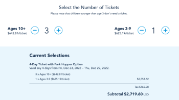 family of 4 at disney world at christmas holiday time park hopper ticket price total By Sara McOmber Leave a Comment