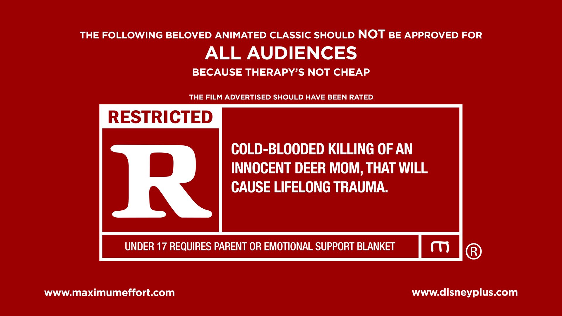 Reynolds specifically calls out movies like The Lion King, Old Yeller, Snow White and the Seven Dwarfs, and Bambi for being too adult, thanks to content including mauling and “cold-blooded killing of an innocent deer mom.” And we’ll be honest — he might have quite a bit of support on these.