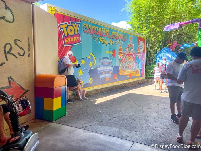 Keep in mind that some construction is still going on in Toy Story Land, so you will pass some construction scrim that is still up for those projects.