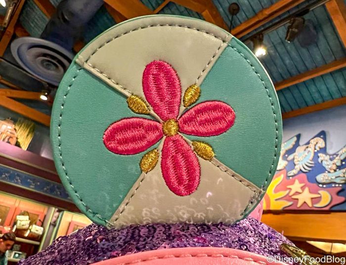 While we stopped by Discovery Trading, we spotted the “it’s a small world” Loungefly Backpack for $85! The bag is just as colorful and fun as the attraction, with purple sequins and a pink front pocket (with Mickey’s buttons, of course)…