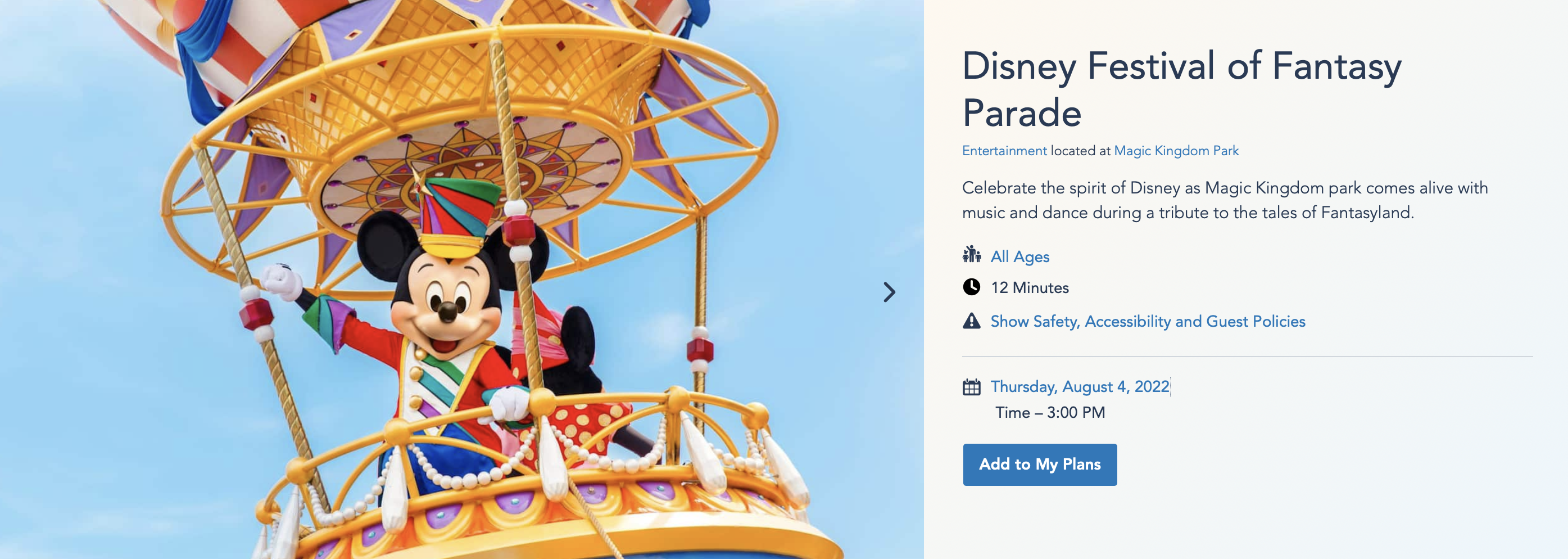 Other than those four August dates, Festival of Fantasy still shows the usual 12PM and 3PM showtimes between July 25th and September 3rd. We’ll be keeping our eyes peeled for any future performance time changes, but for now, it looks like just those four August dates show reduced showtimes.