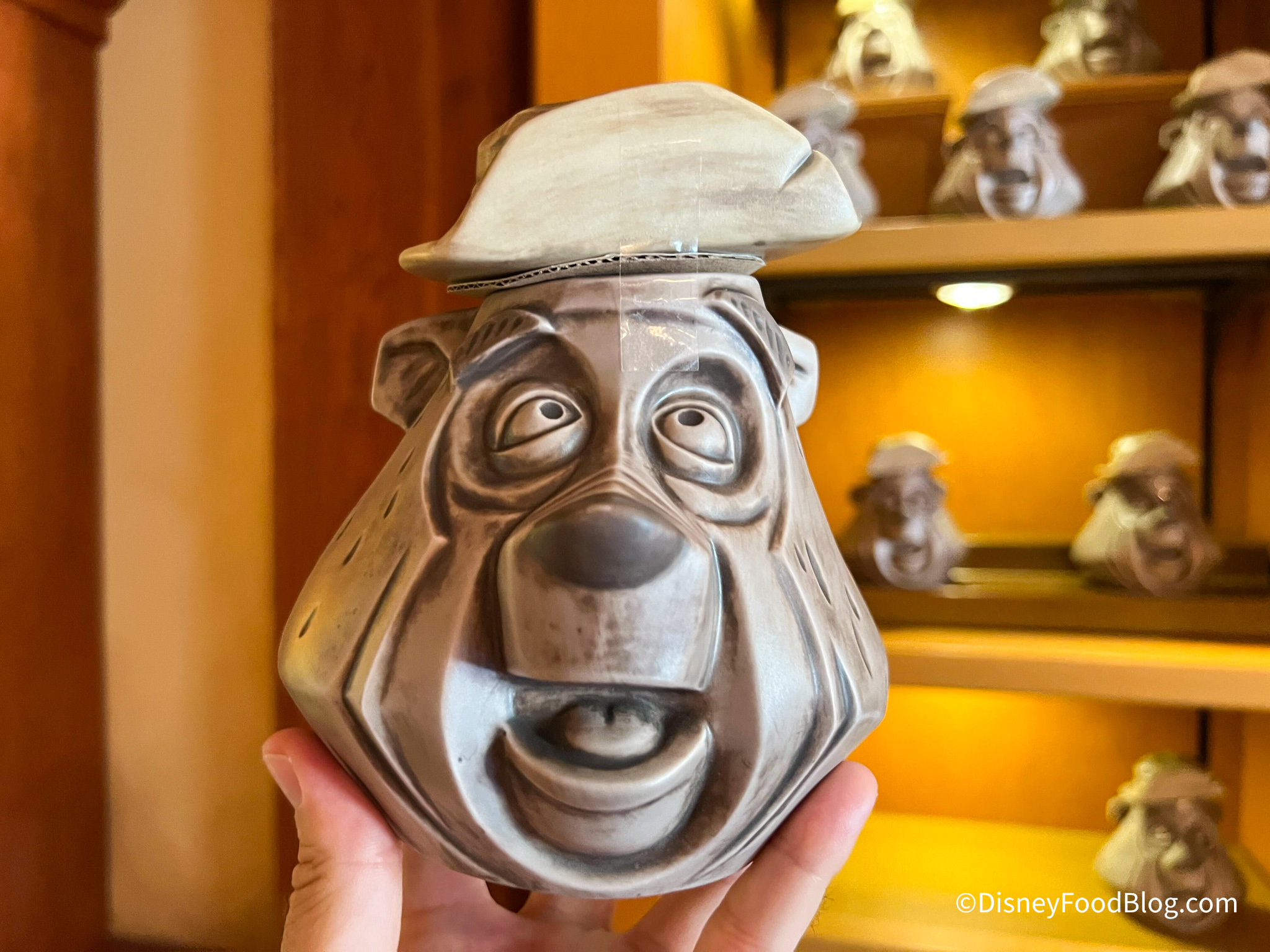Bonjour Village Gifts is located near the Beast’s Castle and Be Our Guest in Fantasyland. When we were there, we noticed an… interesting looking coffee mug. It’s one in the shape of Big Al from the Country Bear Jamboree!