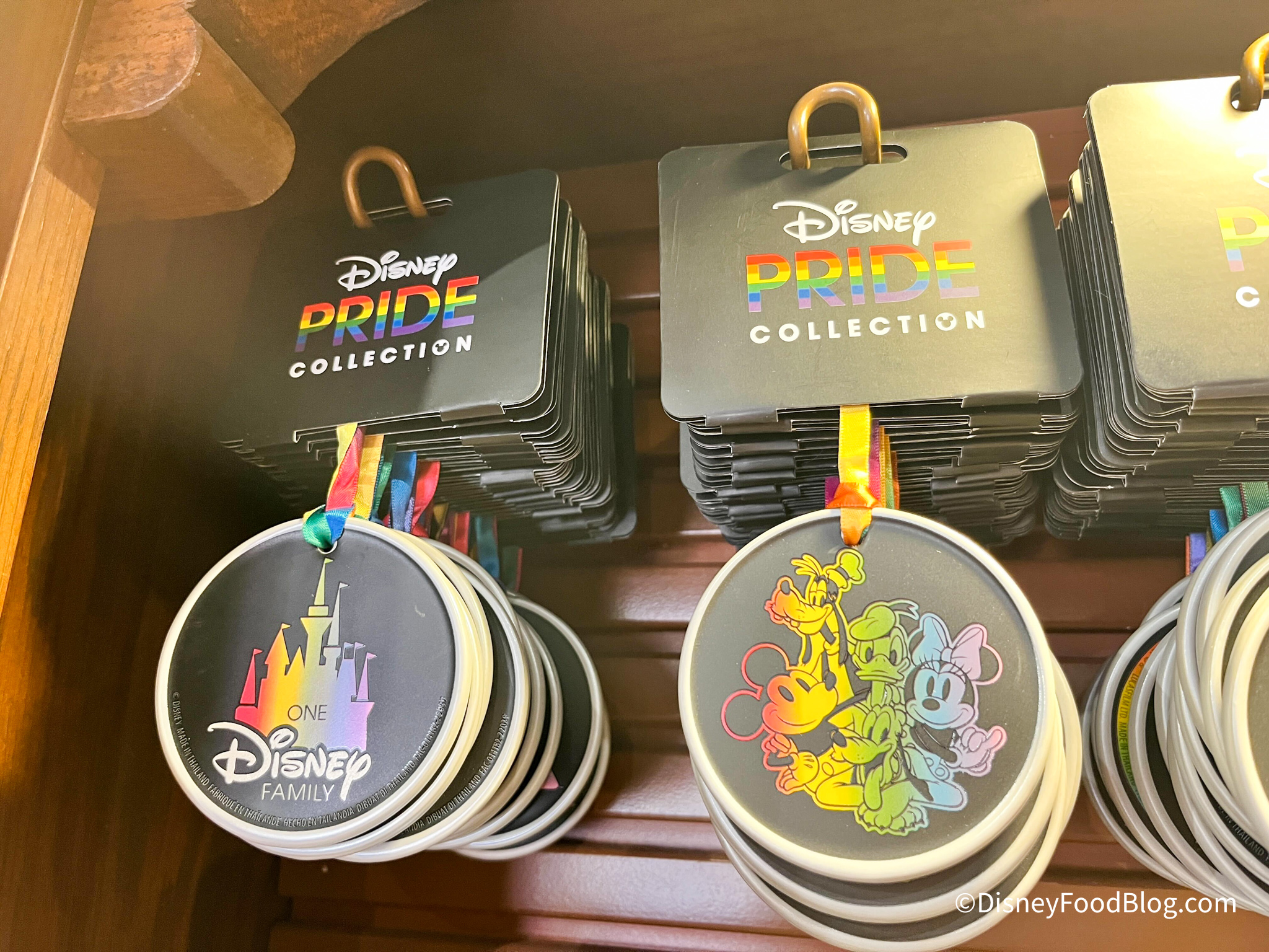 At Ye Olde Christmas Shoppe, we saw some new ornaments. There this Pride Ornament for $17.99 that says “One Disney Family” on one side with a picture of Mickey, Goofy, Pluto, Donald, and Minnie on the other.