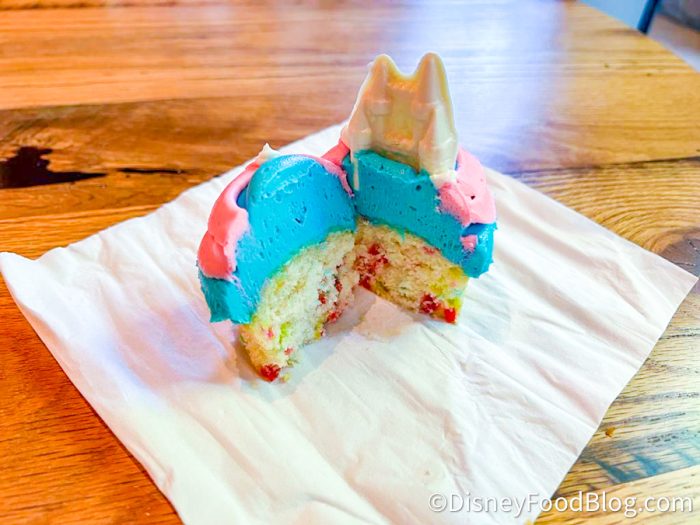 This is the Sleeping Beauty Castle Cupcake from GCH Craftsman Grill at Disney’s Grand Californian Resort! We found it for $8.