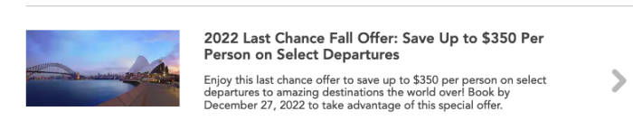 From now until December 27th, you can save up to $350 on select Adventures By Disney excursions that take place from October 21st, 2022 to January 29th, 2023.
