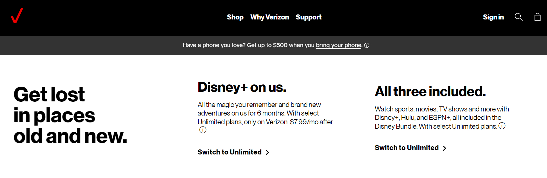 Customers who sign up or upgrade to select unlimited plans can get the Disney+ bundle for free for six months, which includes Disney+, Hulu+, AND ESPN+.