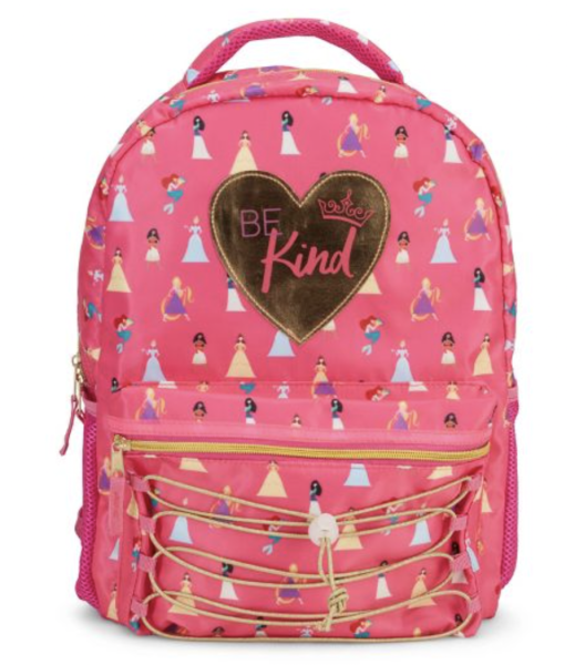 This backpack features a gold heart “Be Kind” applique and gold elastic cording, and the print includes your favorite Disney Princesses like Cinderella, Moana, Ariel, Rapunzel, Mulan, and more. There’s also a front pocket for extra storage!