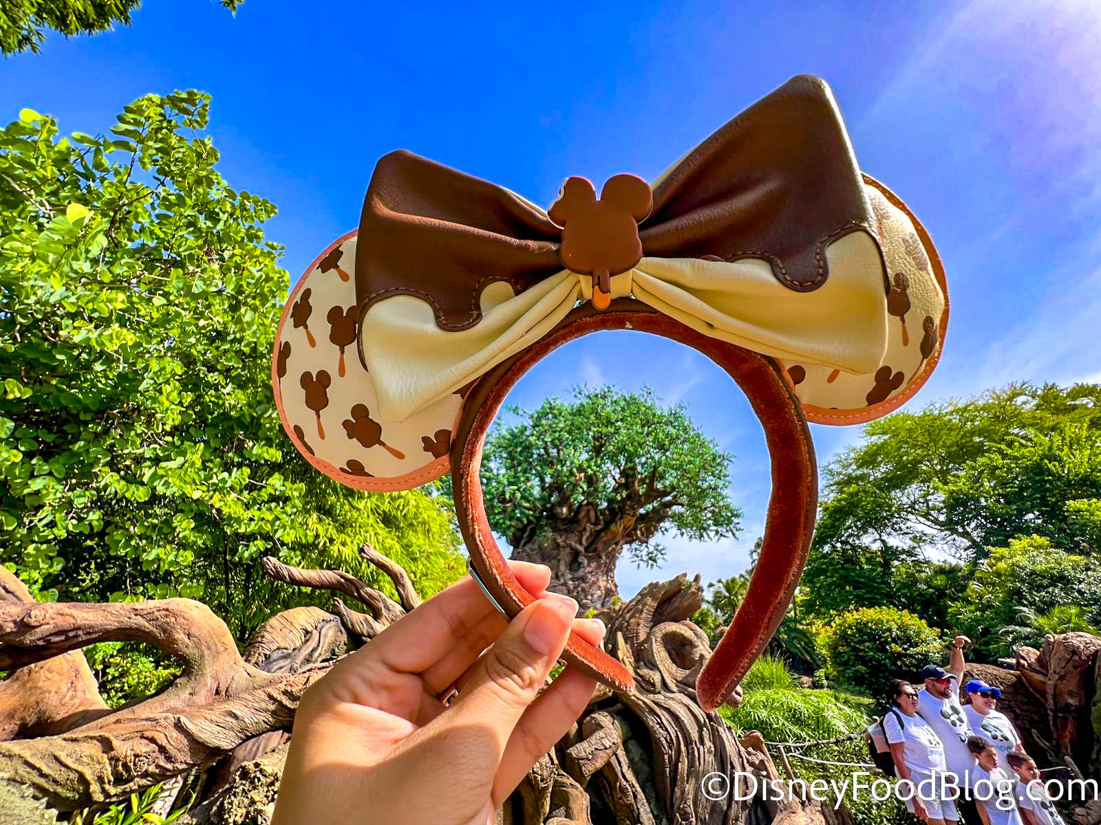 In Island Mercantile this morning at Disney’s Animal Kingdom, we spotted the Mickey Premium Bar Minnie Ears! This isn’t the first time we’ve seen ears themed to the iconic treat (there was a different design a few years ago), but these are VERY different than their predecessor.