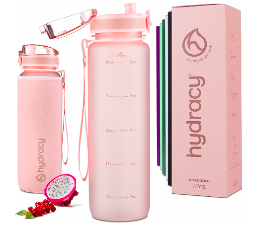 This Hydracy Water bottle comes in tons of colors, has a sleeve so that it doesn’t sweat if you put it in a bag, and it has time markers up the side so you can keep track of how much water you should be drinking!