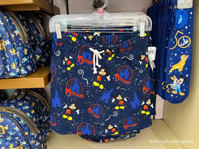 There’s also this 15th Anniversary skirt! It is blue with confetti and the 15th Anniversary logo. It has a drawstring on the top so you can adjust the size. It is $36.99.