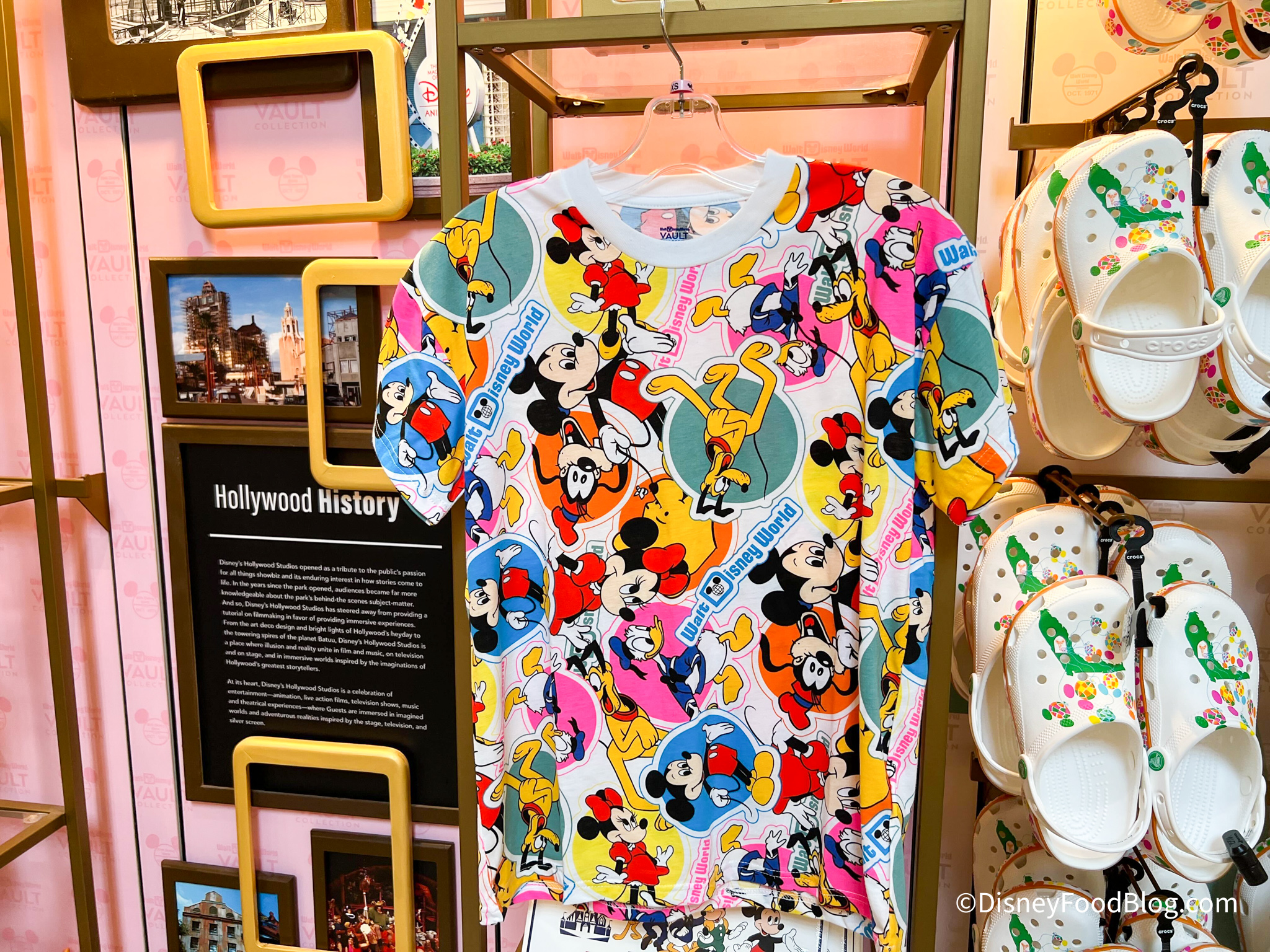 At Celebrity 5 & 10, we saw tons of stuff from the Disney World 50th Anniversary Vault Collection, including items celebrating not Disney World’s 50th anniversary, but its 15th (since this is a vintage-inspired collection). We saw this white shirt that says “Walt Disney World 15 years” and has a picture of Mickey Mouse on it with Cinderella Castle. It is $36.99.