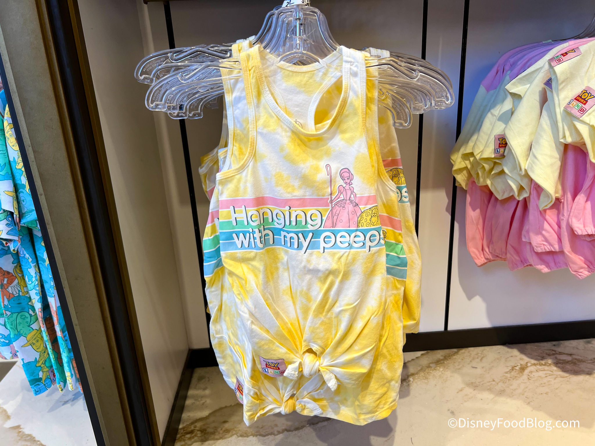 This kids’ yellow tank top is $24.99 and has Bo Peep on it and says “Hanging with my peeps.”
