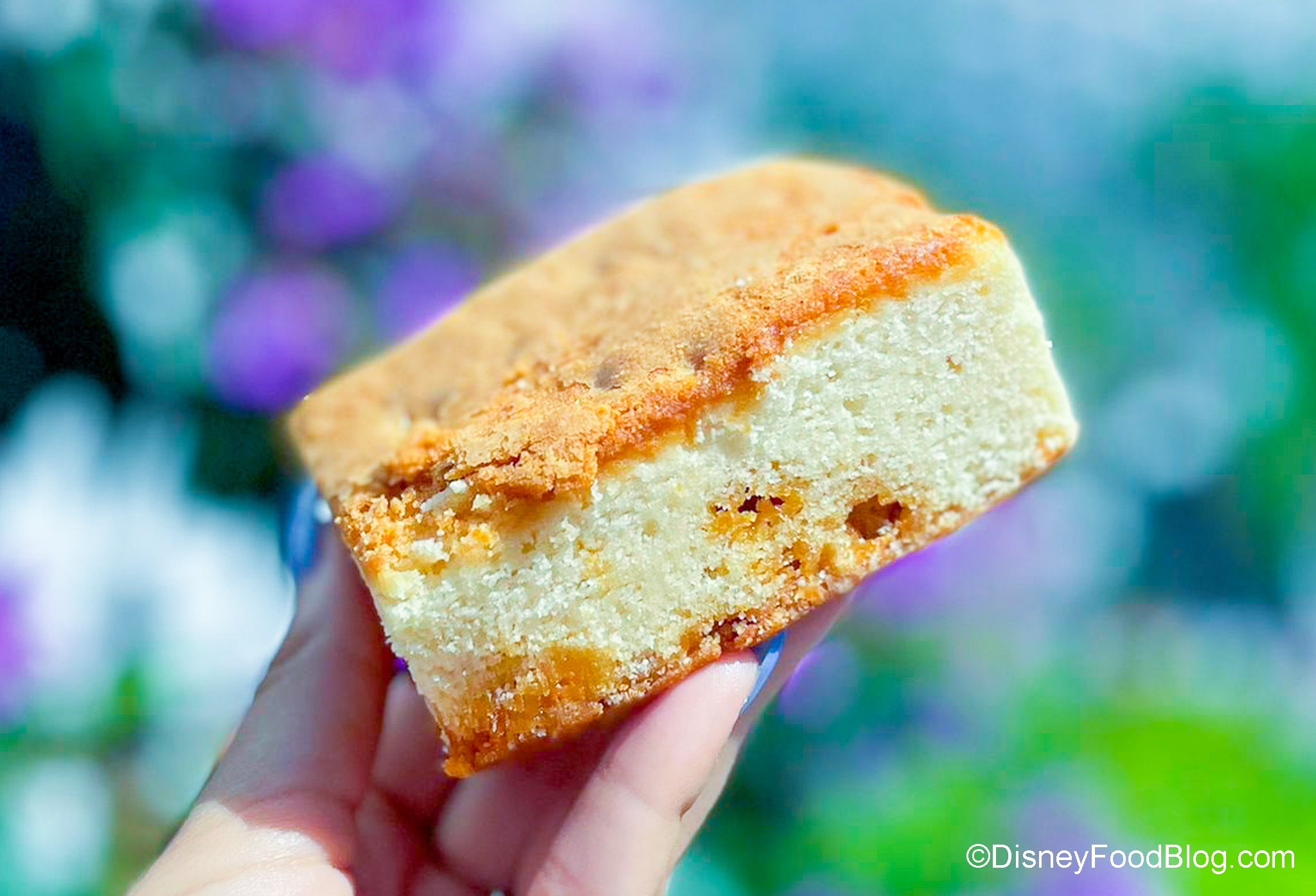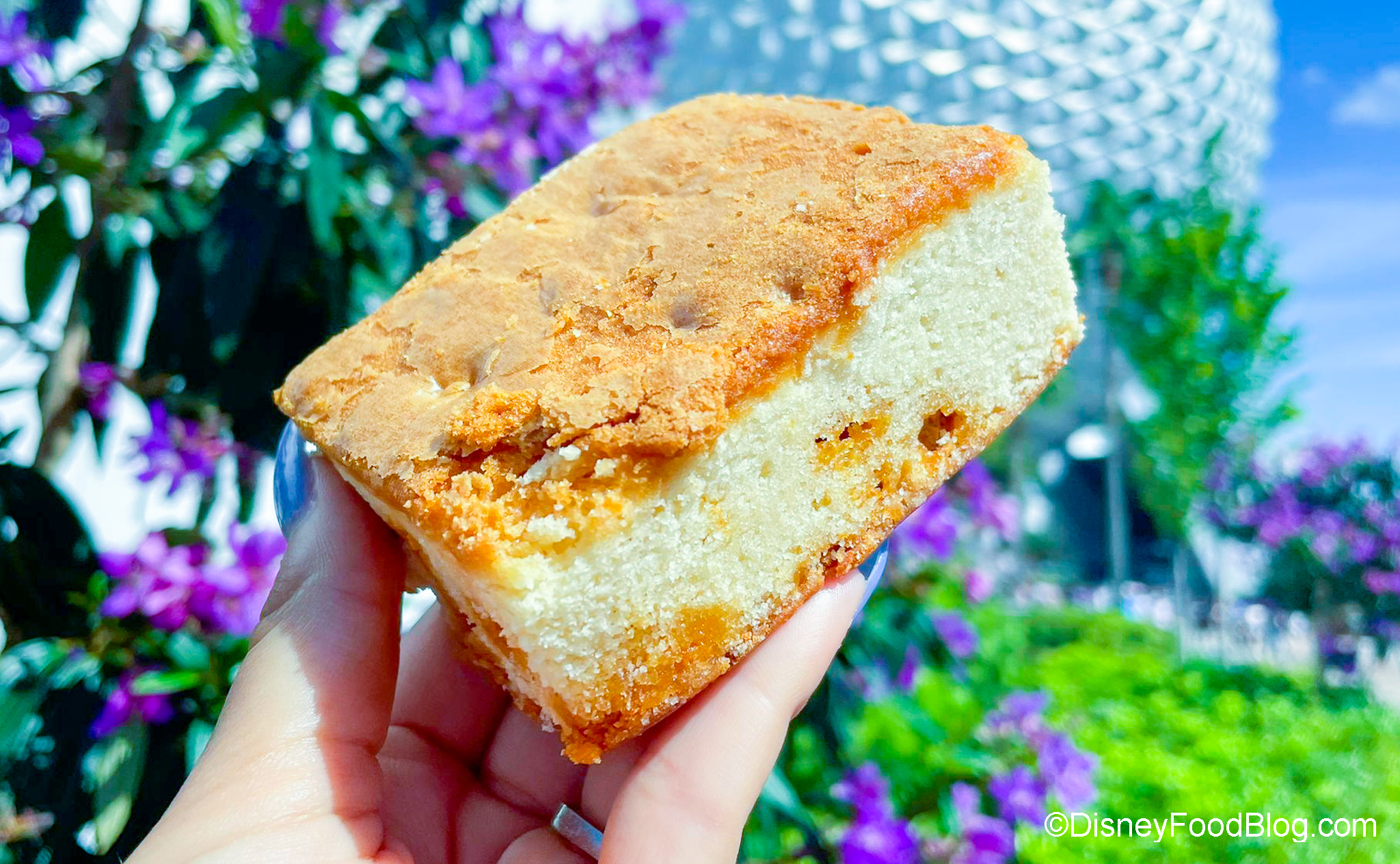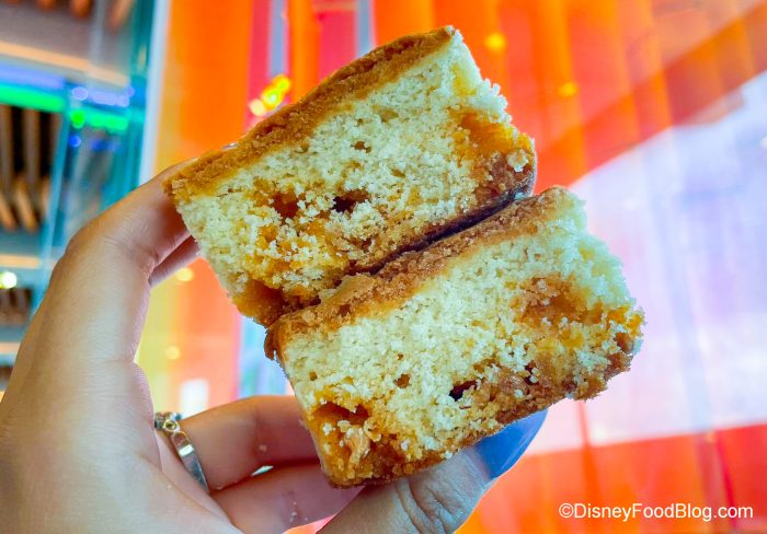 So we headed on over to the Starbucks inside Connections Cafe in EPCOT to see what kind of snacks were available. What did we find? We found a Blondie with Butterscotch Chips, but here’s the thing…does this LOOK like a blondie to you? Blondies should be like brownies without the chocolate (which is, literally, why they’re called blondies). But this…this looks like cake!