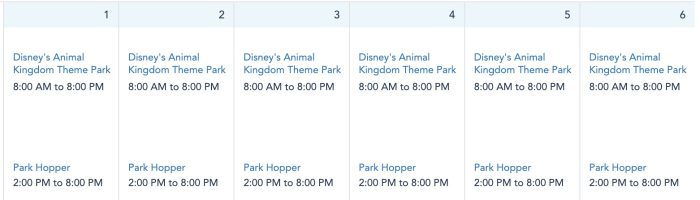 Disney’s Animal Kingdom is open from 8AM-8PM every day next week.