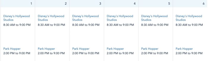 Disney’s Hollywood Studios is open from 8:30AM to 9PM every day next week.