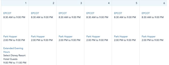 EPCOT’s park hours are the same every day next week.