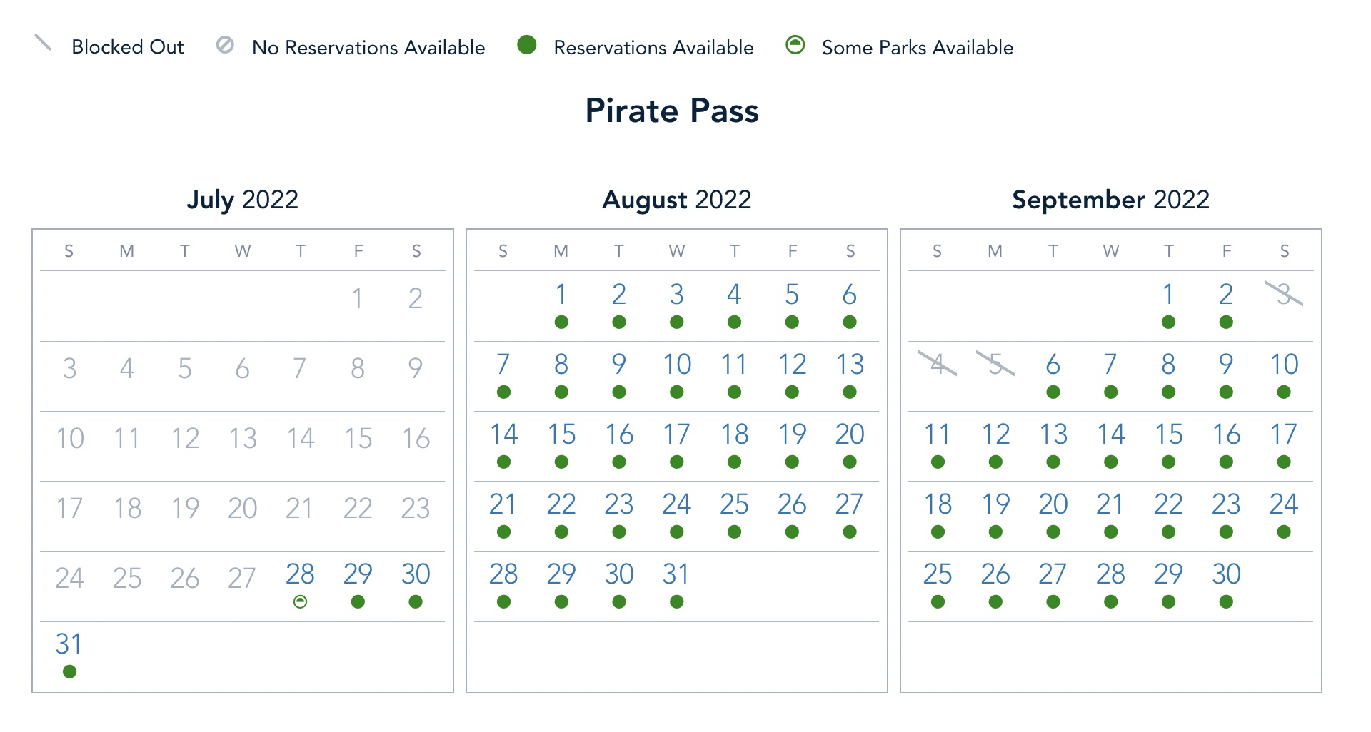 Pirate Pass Reservation Availability
