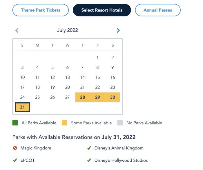 And finally, let’s take a look at the availability for select Disney World Resort hotel guests!