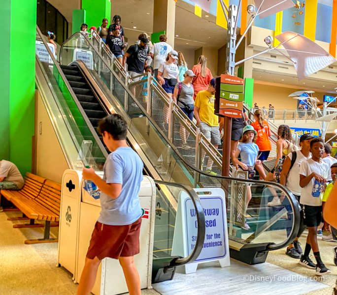 Don’t get stuck in the Land Pavilion in EPCOT! The escalator is closed, so for now you’ll have to use the elevator or stairs.