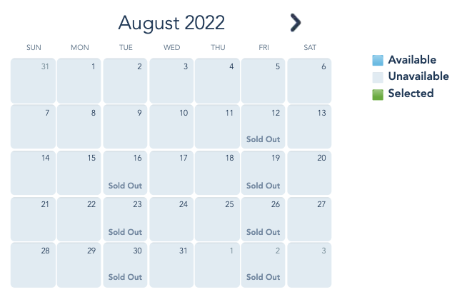 That means the only dates left are in October, and this month is almost completely sold out as well. In fact, the only available day is now October 21st.