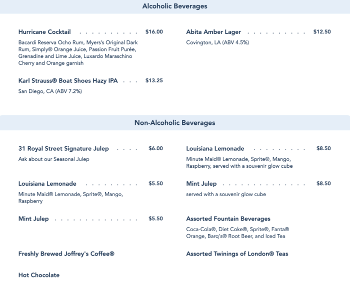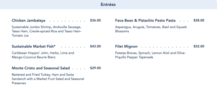 Now that we have a good idea of Blue Bayou’s atmosphere, let’s find out what’s on the menu!