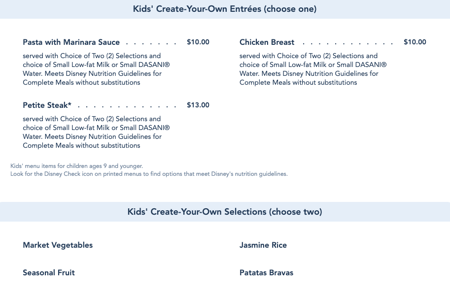 The kids menu at Blue Bayou isn’t really anything to write home about — to be honest, we think it’s a little…uninspired — but sometimes simple is best with kids! They do get their choice of side as well — either veggies, fruit, rice, or patatas bravas!