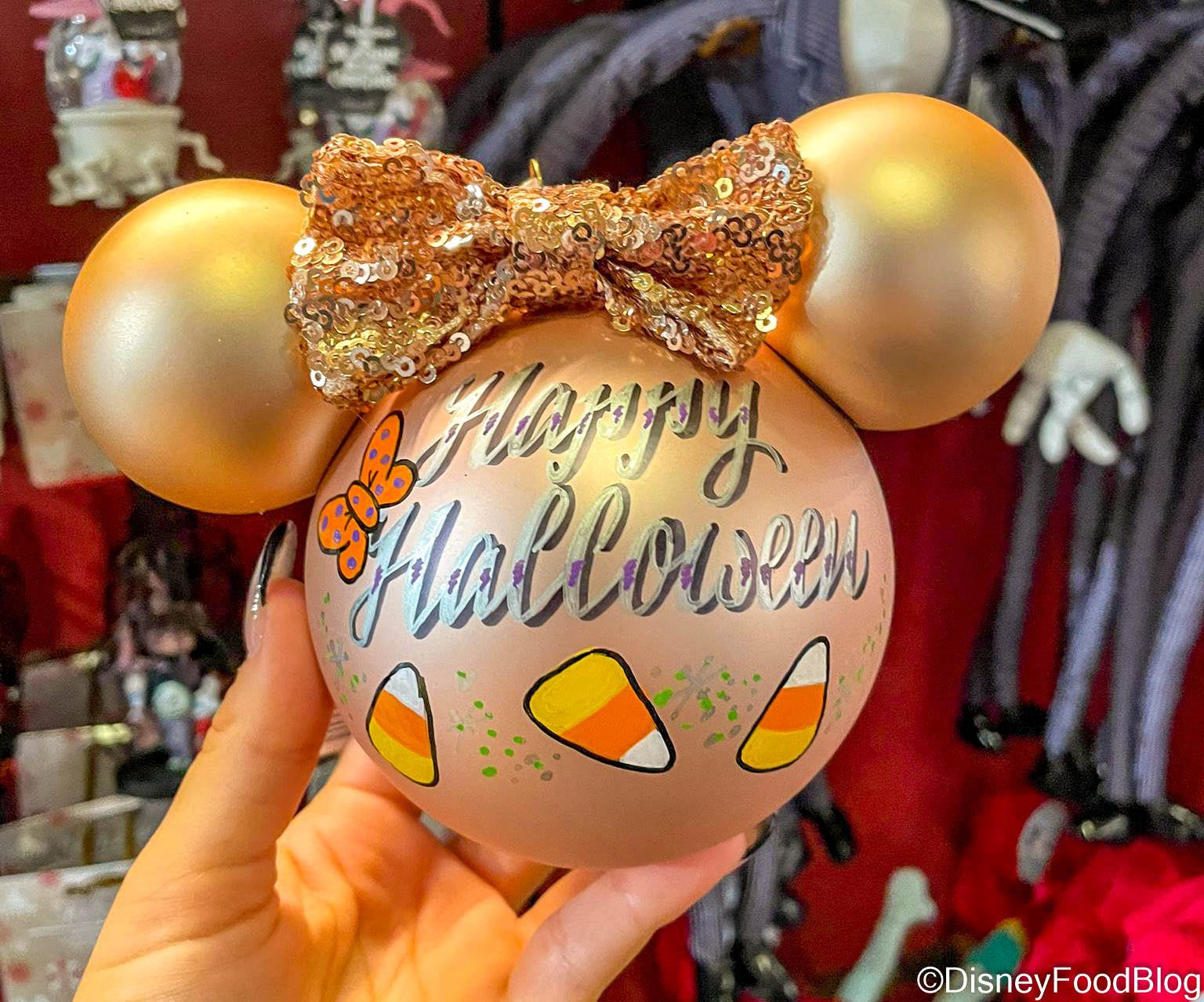 They have Halloween customizations for their Christmas Ornaments! Christmas AND Halloween?! It doesn’t get much better than that. Each customization costs $3, and you can choose from designs of spiderwebs, Candy Corn, stringed lights, pumpkins, and Halloween Minnie ears. And not every personalization only comes with 1 single design — for example, if you ask for Candy Corns, you’ll get 3.