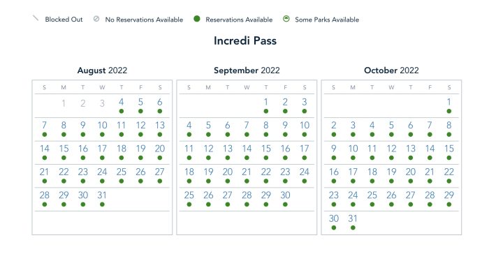 Now let’s take a look at the Park Pass Reservation availability for Disney World’s Annual Pass holders!