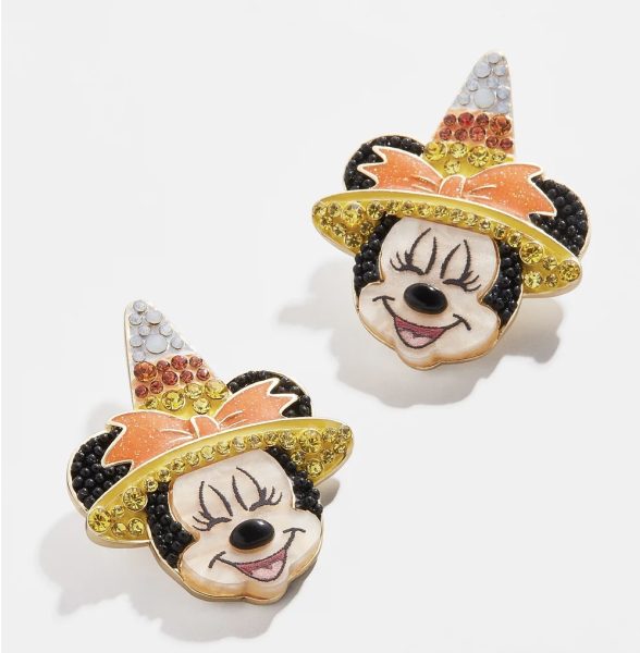 These earrings have Minnie wearing a Candy Corn witch’s hat with yellow, orange, and white gemstones. They are also $48 for the pair.